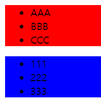 <!DOCTYPE html> <html lang="en" xmlns:th="http://www.thymeleaf.org"> <th:block th:replace="~{/fragments/fragment3:: target(~{this:: #ulFirst}, ~{this::#ulSecond} )}"> <ul id="ulFirst"> <li>AAA</li> <li>BBB</li> <li>CCC</li> </ul> <ul id="ulSecond"> <li>111</li> <li>222</li> <li>333</li> </ul> </th:block>target을 사용하여 파라미터 2개를 사용