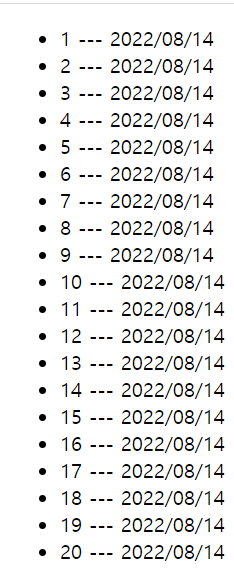 <li th:each="dto : ${list}" > [[${dto.sno}]] --- [[${#temporals.format(dto.regTime, 'yyy/MM/dd')}]] </li>=> #temporals 객체를 이용해서 format() 으로 처리