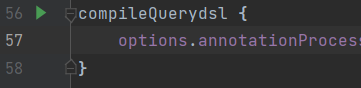 plugins { id 'org.springframework.boot' version '2.7.2' id 'io.spring.dependency-management' version '1.0.12.RELEASE' id 'java' id 'war' id 'com.ewerk.gradle.plugins.querydsl' version '1.0.10' } ``` dependencies { ``` implementation 'com.querydsl:querydsl-jpa' } tasks.named('test') { useJUnitPlatform() } def querydslDir = "$buildDir/generated.querydsl" querydsl { jpa = true querydslSourcesDir = querydslDir } sourceSets { main.java.srcDir querydslDir } configurations { querydsl.extendsFrom compileClasspath } compileQuerydsl { options.annotaitionProcessorPath = configurations.querydsl }위 코드를 입력하고 build.gradle을 갱신하면 아래와 같이 compileQuerydsl이 실행 가능해짐