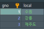 package yeonjy.cafe.repository; import org.junit.jupiter.api.Test; import org.springframework.beans.factory.annotation.Autowired; import org.springframework.boot.test.context.SpringBootTest; import yeonjy.cafe.entity.Area; @SpringBootTest public class AreaRepositoryTests { @Autowired private AreaRepository areaRepository; @Test public void insertDummies(){ Area area1 = Area.builder() .gno(1L) .local("수원") .build(); System.out.println(areaRepository.save(area1)); Area area2 = Area.builder() .gno(2L) .local("강릉") .build(); System.out.println(areaRepository.save(area2)); Area area3 = Area.builder() .gno(3L) .local("제주도") .build(); System.out.println(areaRepository.save(area3)); } }수원, 강릉, 제주도를 각각 gno를 지정해서 저장해주었다.