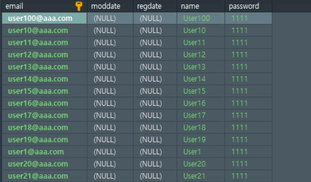 위 테스트의 결과로 아래와 같이 데이터가 추가되었다.