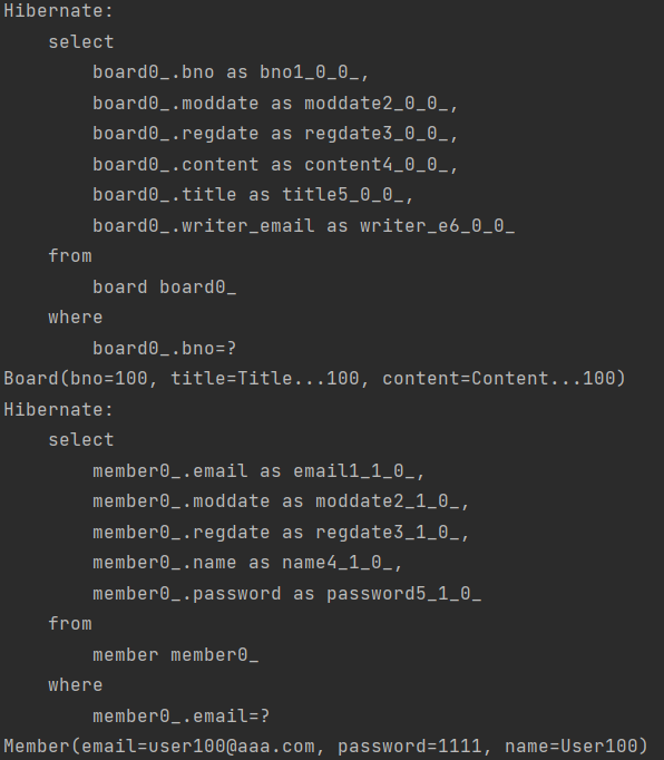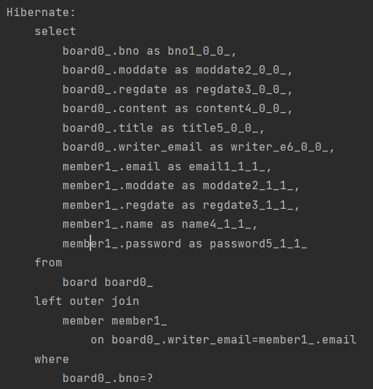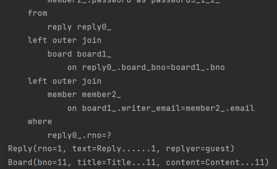 위의 실행된 SQL을 보면, reply, board, member 테이블까지 모두 조인으로 처리된 것을 확인 가능