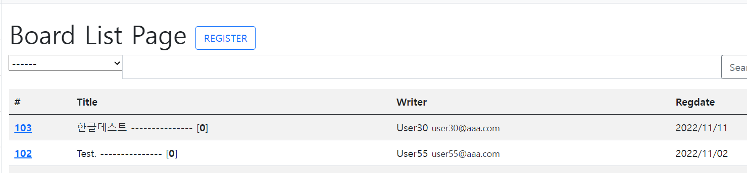 board/list 실행 화면 [ 게시물 등록 처리 ]