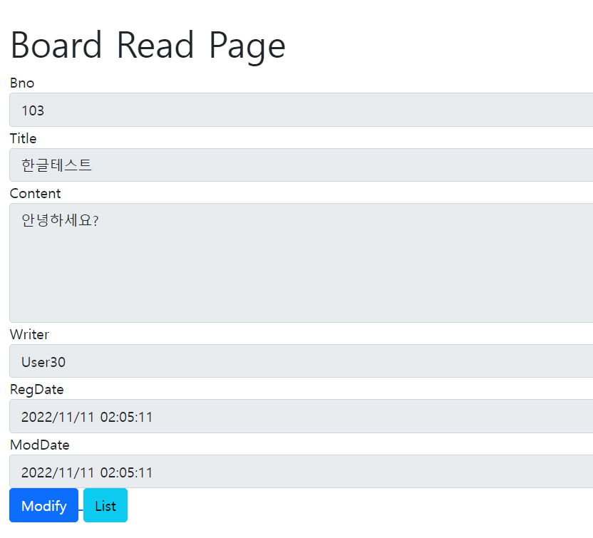 @GetMapping({"/read", "/modify"})아까 만든 Controller의 read에 modify도 추가해준다.