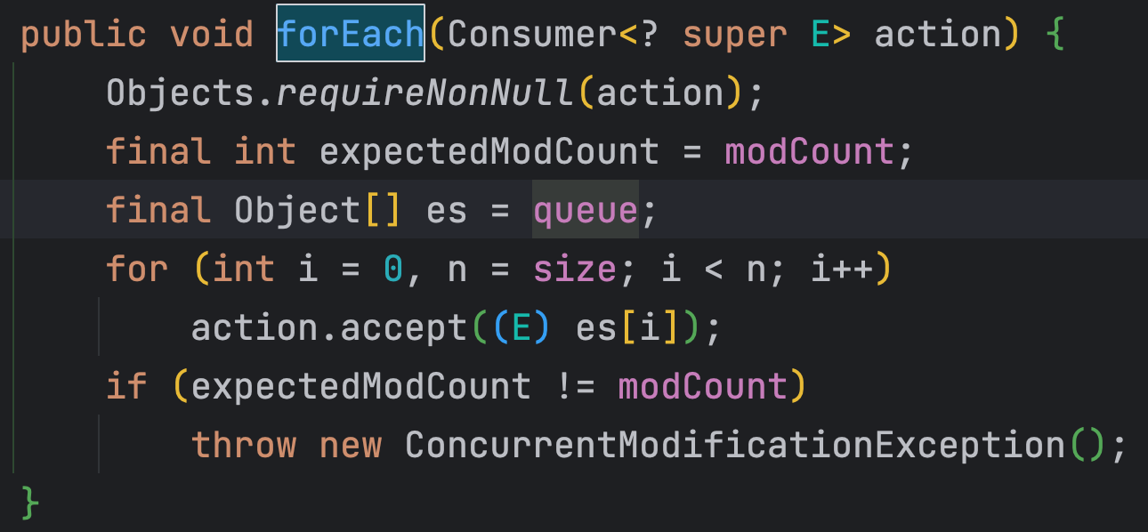 PriorityQueue의 forEach메서드를 보겠습니다.