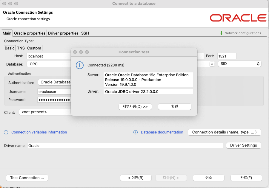 ALTER SYSTEM DISABLE RESTRICTED SESSION; 입력하고 다시 Test Connection 하면 아래와 같이 정상적으로 뜰겁니다.