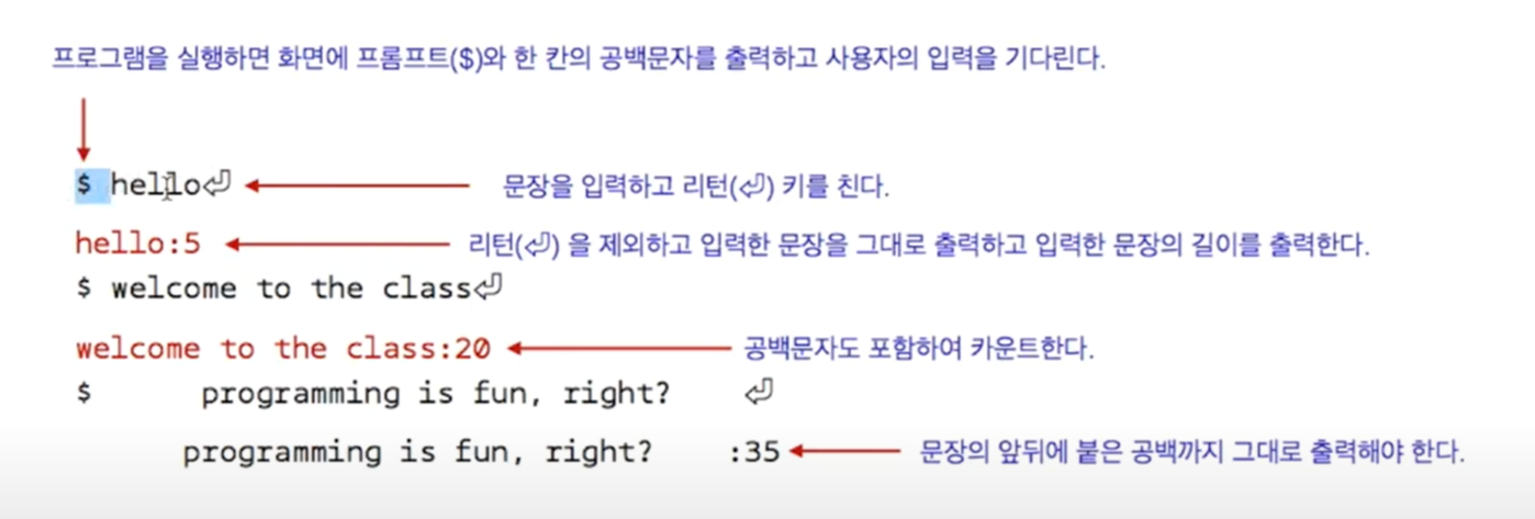문제 1 /* * 2022-01-23 * 연습문제 1 * 프로그램을 실행하면 $와 한 칸의 공백문자를 출력하고 사용자의 입력을 기다린다. * 문장을 입력하면 문장 그대로와 길이를 출력한다. */ #include <stdio.h> #include <string.h> #define BUFFER_SIZE 40 int read_line(char str[], int n); int main_1(void) { char buffer[BUFFER_SIZE]; while (1) { printf("$ "); int len = read_line(buffer, BUFFER_SIZE); //fgets(buffer, BUFFER_SIZE, stdin); //buffer[strlen(buffer) - 1] = '\0'; //buffer의 마지막 문자가 줄바꿈 문자가 되지 않도록 하기 위함 printf("%s : %d\n", buffer, len); } return 0; } int read_line(char str[], int n) { int ch, i = 0; while ((ch = getchar()) != '\n') //getchar의 리턴 타입은 int임 -> ch의 타입을 int로 함 if (i < n) str[i++] = ch; str[i] = '\0'; return i; }