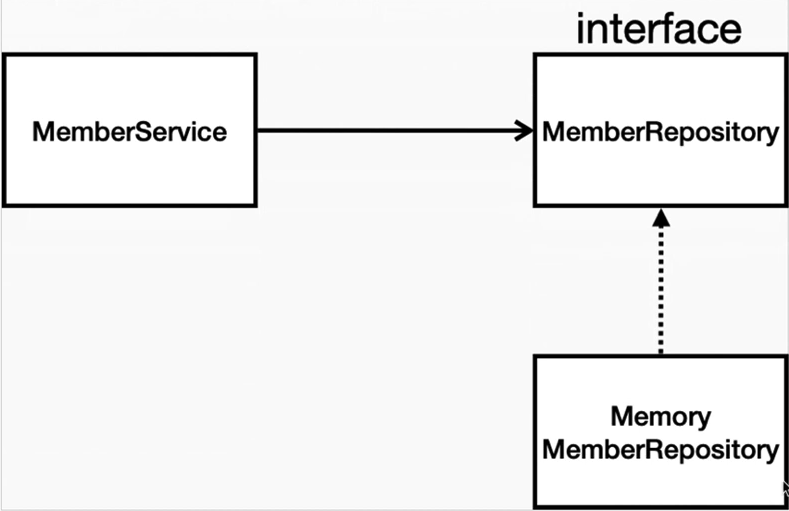 클래스 의존관계 - 아직 데이터 저장소가 선정되지 않아서, 우선 인터페이스로 구현 클래스를 변경할 수 있도록 설계