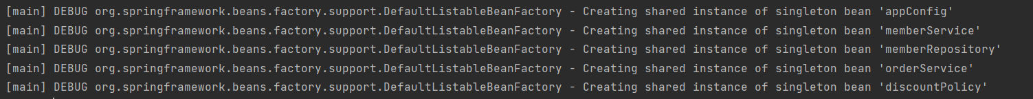 public class AppConfig { public MemberServiceImpl memberService() { return new MemberServiceImpl(memberRepository()); } public MemberRepository memberRepository() { return new MemoryMemberRepository(); } public OrderService orderService() { return new OrderServiceImpl(memberRepository(), discountPolicy()); } public DiscountPolicy discountPolicy() { return new FixDiscountPolicy(); } }📎new MemoryMemberRepository() 의 중복이 memberRepository() 를 만들면서 제거됨